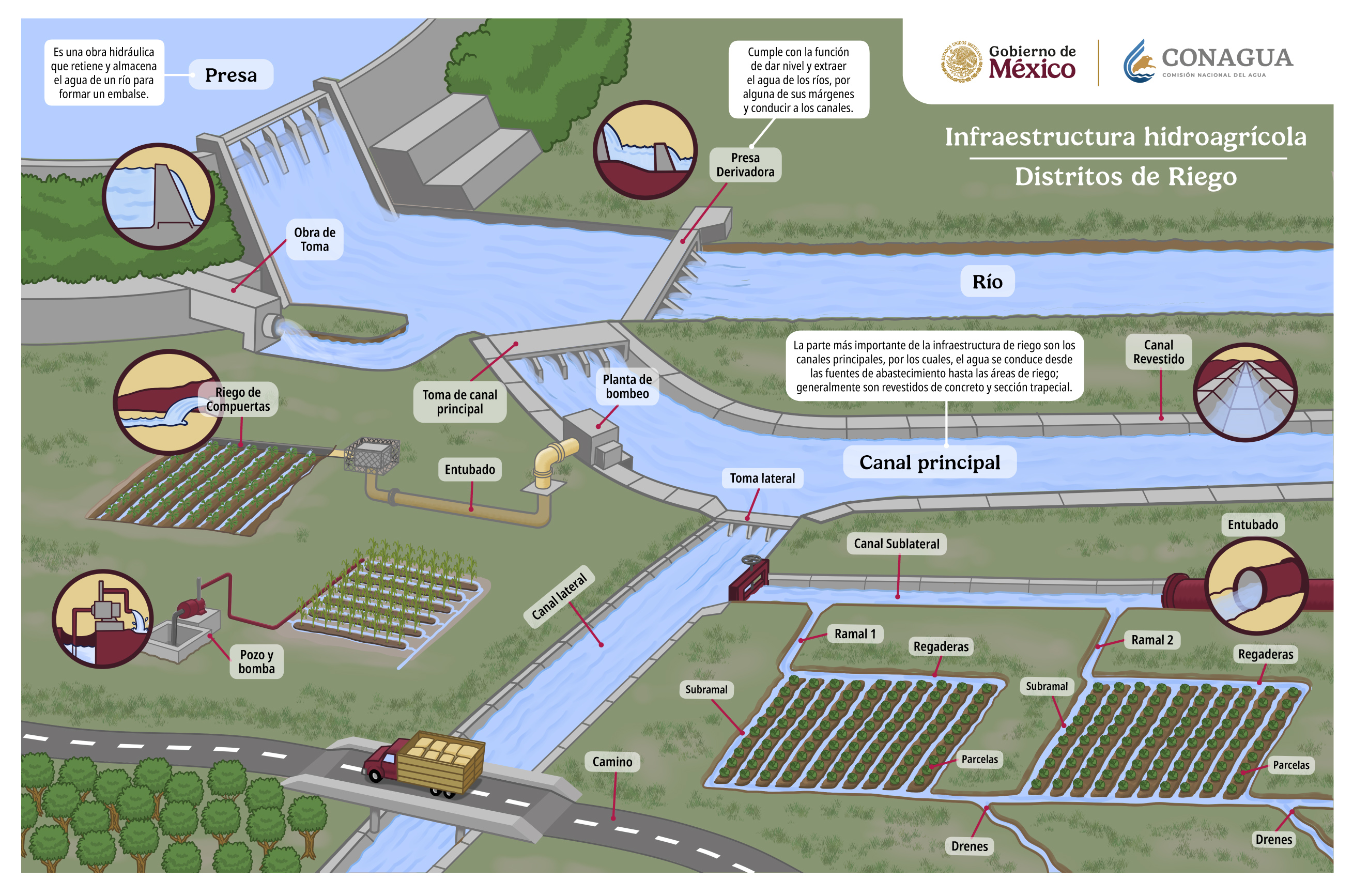 Fenómenos naturales como lluvias intensas, huracanes y sismos, así como el cambio climático, provocan daños físicos en canales, tuberías y estructuras; azolve de canales reduciendo la capacidad de almacenamiento; disminución de la disponibilidad hídrica; interrupciones en el servicio de riego; y sequías e inundaciones que generan la pérdida parcial o total de la cosecha.